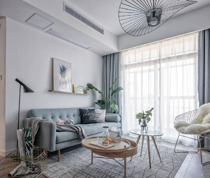 简约北欧公寓,大量留白和木质建材平衡,软饰搭配则增加少许金色元素,使室内充满轻盈空气感。